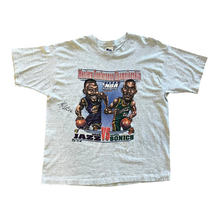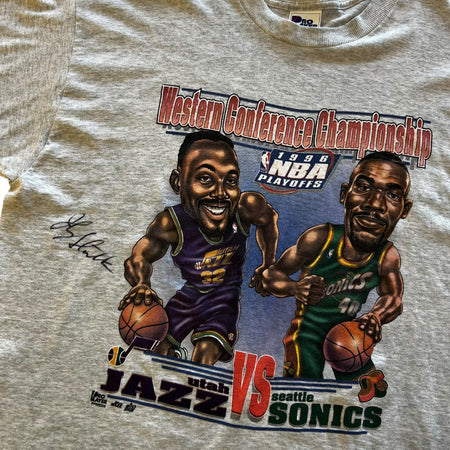 West Conference Champions Malone Vs Kemp Caricature T-Shirt Grey Size XL
